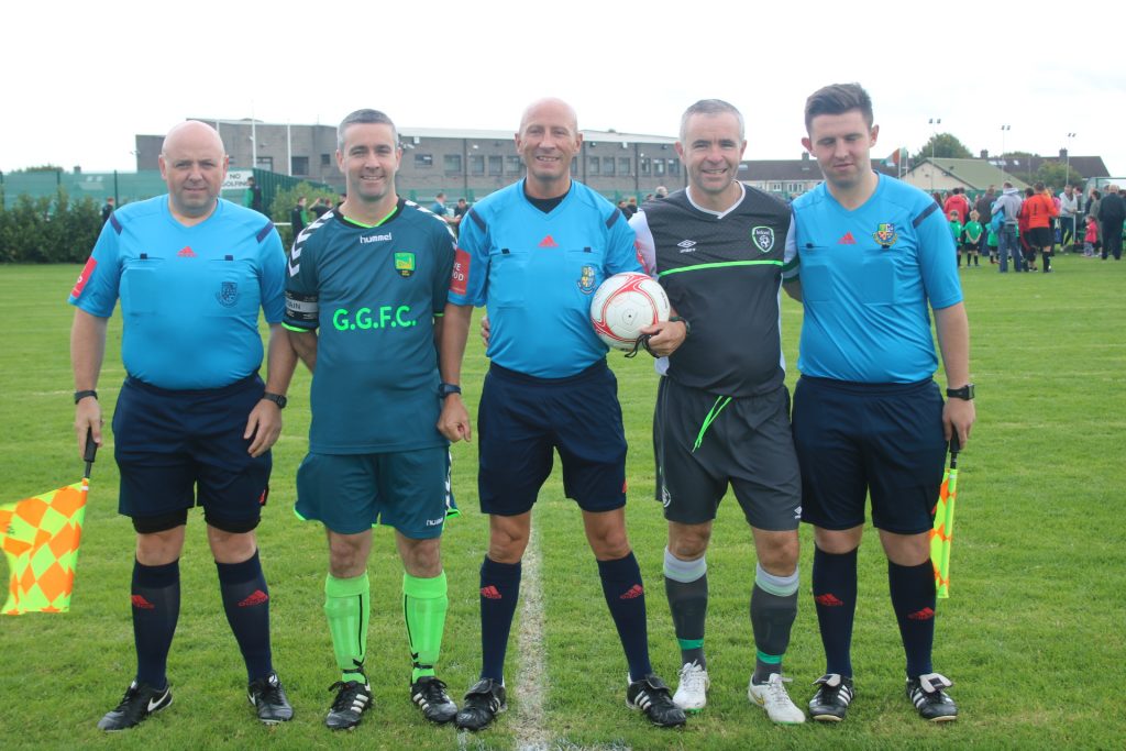 The crowd were treated to a very entertaining game. The game finished 3-1 to the Republic Of Ireland masters. At half time it was 0-0 but the Masters introduced some big guns. The masters side went 2 up with goals from their Man Of The Match Derek Treacy. Greenhills got one back with a superb goal.from Darren Goode. He looked up and seen the keeper of his line and lobbed him from the half way line. Goode went close again hitting the crossbar before the masters wrapped it with a close range header past Greenhills Man Of The Match Roy Lawlor.