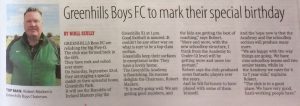 Notice re 50th Celebration in the Evening Herald on Monday 26/06/2017